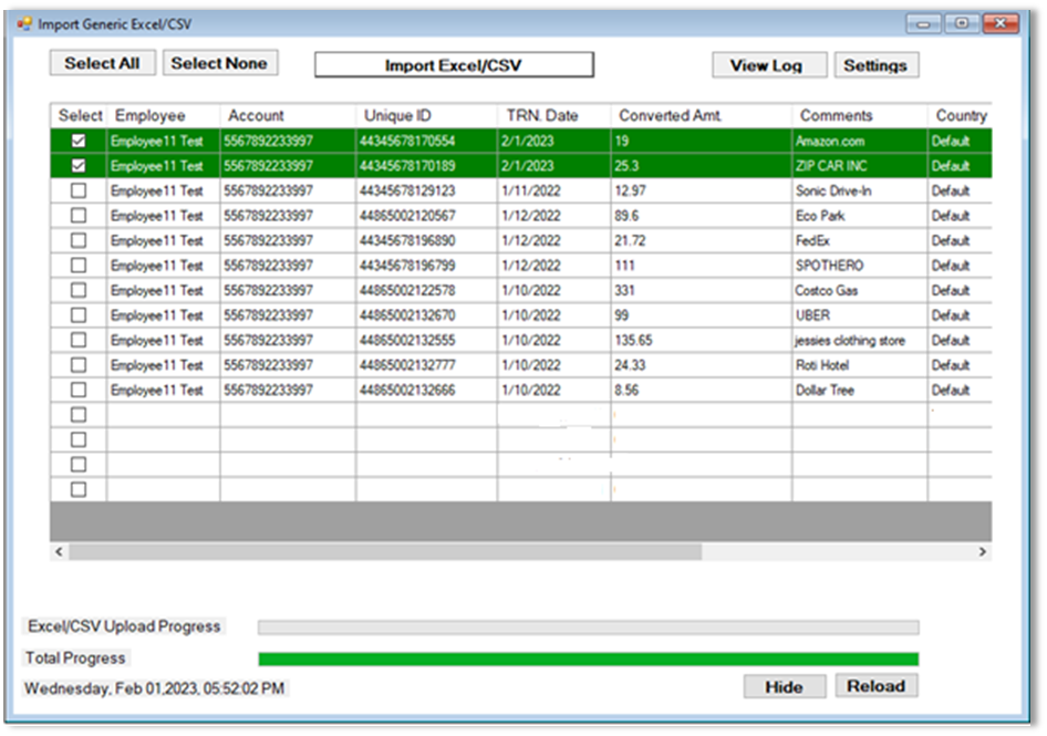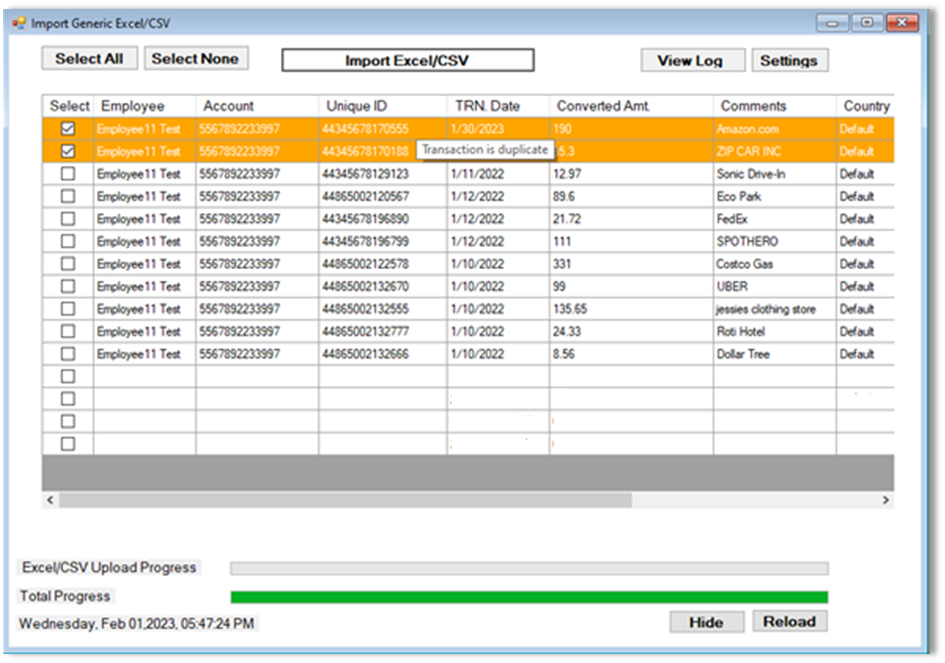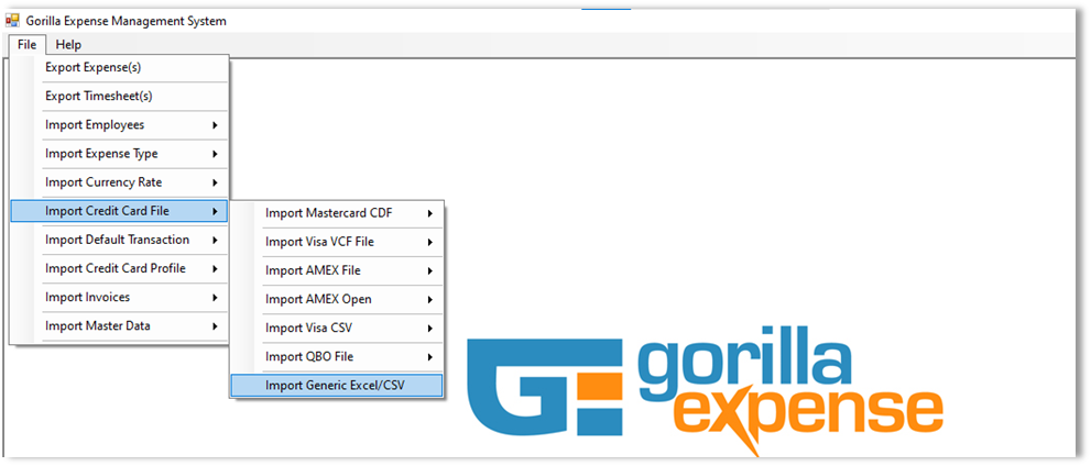 - Once logged in, go to File - > Import Credit Card File -> Import Generic excel/CSV